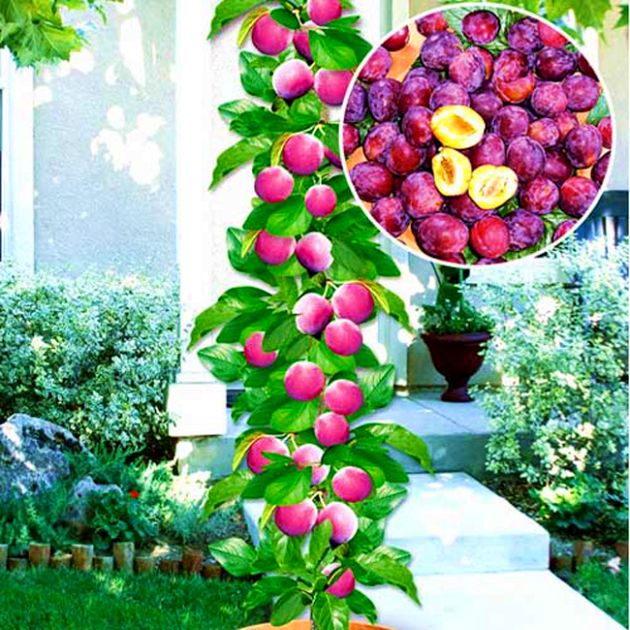 По видам саженцы колоновидных деревьев можно разделить на семенных карликов (в них присутствует «карликовый» ген) и привитых карликов (к корневой системе плодового дерева делается прививка карлика). В высоту достигают до 2,5 метров. Требуют обязательной обрезки ветвей, в противном случае вырастают традиционные плодовые деревья.
