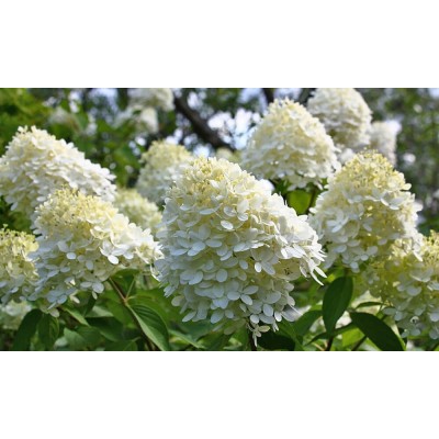 Период цветения начинается в середине июня и продолжается до первых заморозков осенью. В это время куст покрывается крупными соцветиями, похожими на пирамиды. Каждая «пирамида» вырастает до 15-18 сантиметров в высоту и 10-12 сантиметров в ширину. Соцветия состоят из стерильных цветков, а распустившиеся бутоны достигают диаметра 3-4 сантиметра. Лепестки имеют кремовый или бело-зелёный оттенок. По окончании периода цветения цвет меняется на белый с лёгким розовым оттенком.