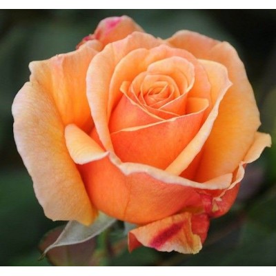 Этот сорт впечатляет своими крупными, около 12 см, махровыми цветами, насчитывающими 30-35 лепестков. Они имеют восхитительный оранжево-персиковый оттенок с легким желтым отливом, что делает их настоящим украшением любого сада.